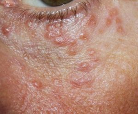 顔面粟粒状狼瘡(LMDF)は、顔面中央部、特に眼瞼およびその周辺の赤-黄色または黄褐色の丘疹を特徴とする、まれな慢性炎症性皮膚症です。