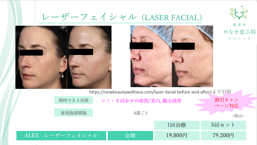 (たとえばレーザーフェイシャル¥19800 ☞ 15840)